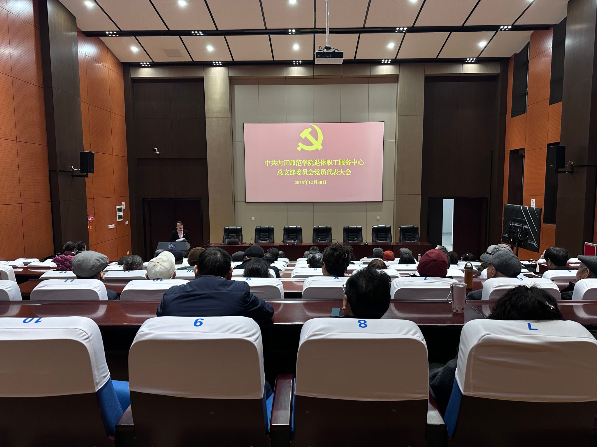 2025年12月30日上午,退休职工服务中心党总支在行知楼B105会议室召开党员大会,顺利完成换届选举工作。51名党员代表参加会议。
